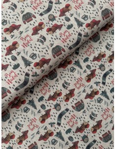 Tela en fondo de color verde oscuro con flores rosa y salmón