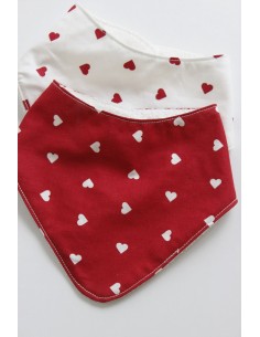 Baberos bandana unisex en color rojo con corazón blanco y rojo con el corazón blanco, ideal para proteger la piel del cuello de los peques de sus babitas.