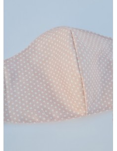 Mascarilla de doble tela de 100% algodón en color rosa de lunares