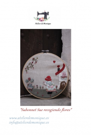 Kit cuadro bastidor"Subonnet Sue recogiendo las flores"