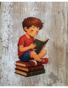 Transfer textil DTF “Niño Lector”-8x12,5cm