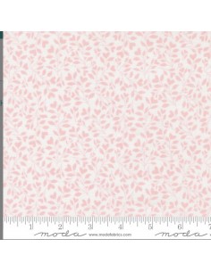 Tela Abide Pink – Moda Fabrics Algodón con fondo rosa suave y pequeño estampado floral en tonos rosa y verde.