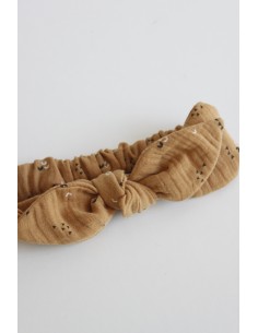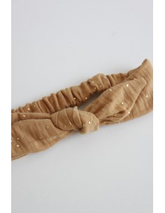 Bonita diadema  color mostaza con lunares dorados.  Cada diadema está adaptada a su orden individual.Turbante  consiste en una diadema y un lazo atado adicional por lo que es fácil de poner y usted no tiene que atar cada vez en la cabeza de su bebé.La banda está hecha de muselina y lleva una goma elástica que se adapta a la medida de la cabeza. La diadema...