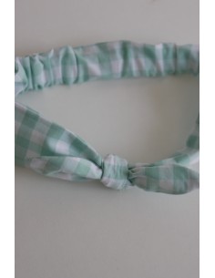 Bonita diadema color turquesa vichy.  Cada diadema está adaptada a su orden individual.Turbante  consiste en una diadema y un lazo atado adicional por lo que es fácil de poner y usted no tiene que atar cada vez en la cabeza de su bebé.La banda está hecha de algodón y lleva una goma elástica que se adapta a la medida de la cabeza. La diadema resultante...