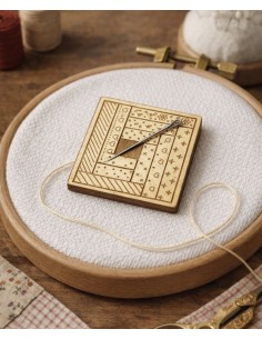 Práctico minder o cuidador de agujas de madera grabado con un diseño inspirado en los bloques tradicionales de patchwork, perfecto para quienes disfrutan cosiendo con calma y creando con telas. Incluye dos imanes de neodimio, que se colocan a ambos lados de la tela para sujetar el minder con firmeza y mantener tu aguja siempre segura mientras trabajas....