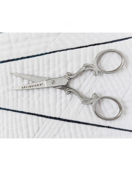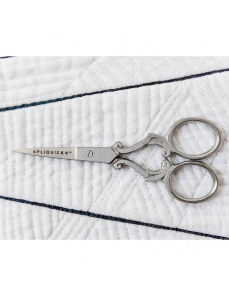 Tijeras dotadas de microsierra en una de sus hojas, y diseñadas para obtener la perfección en el corte. La particularidad de la microsierra se encuentra, en primer lugar, en la precisión del corte, puesto que sujetan la tela y evitan que ésta se deshilache; y, en segundo lugar, en el no deslizamiento de la tela hacia la punta de las tijeras, cosa que nos permite usarlas, al mismo tiempo, tanto para sujetar, como para cortar, especialmente piezas pequeñas. Se hacen imprescindibles para las miniaturas y son únicas para hacer piquetes en los márgenes de costura.