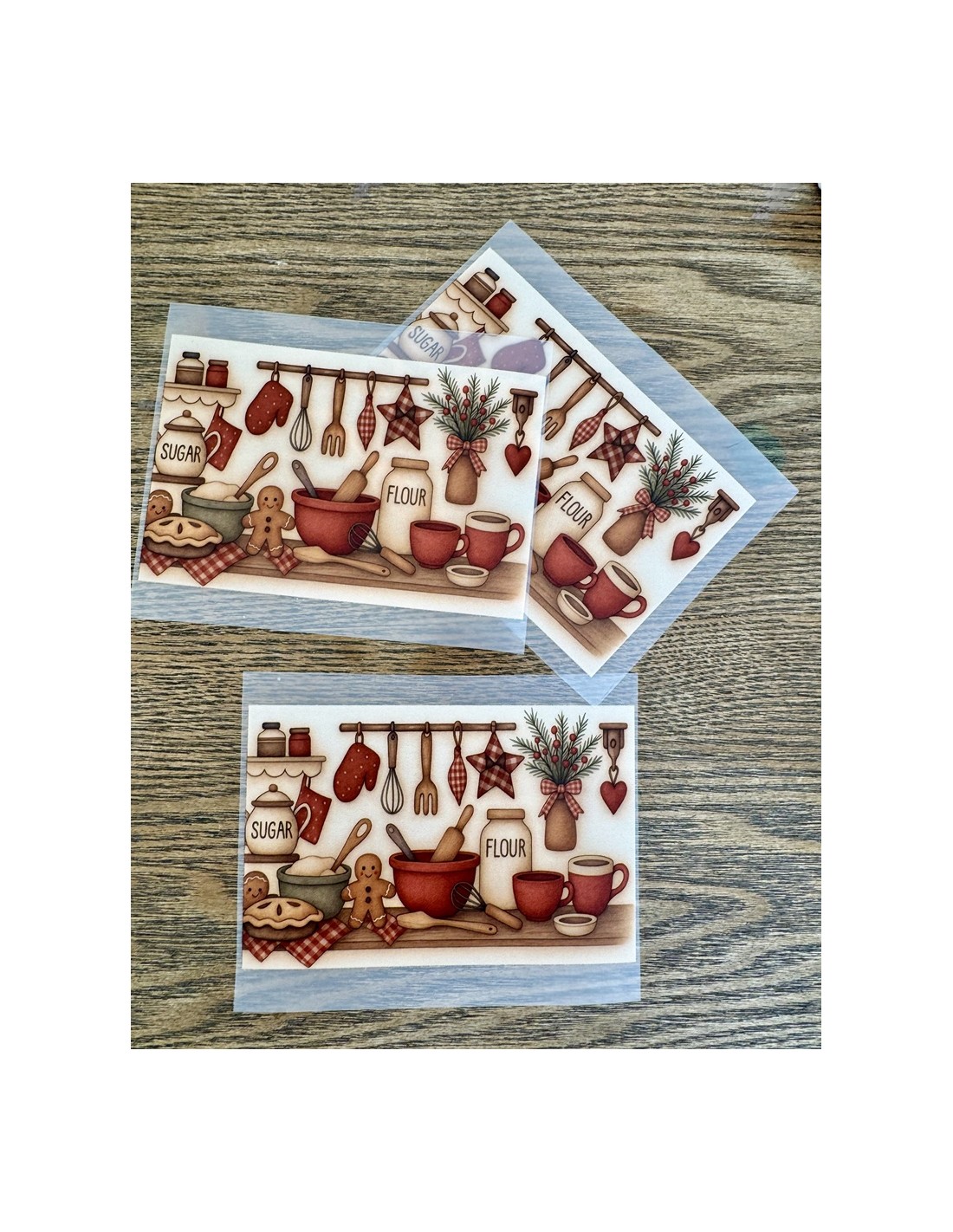 Transfer cocina rústica con utensilios (12 x 10 cm aprox.)