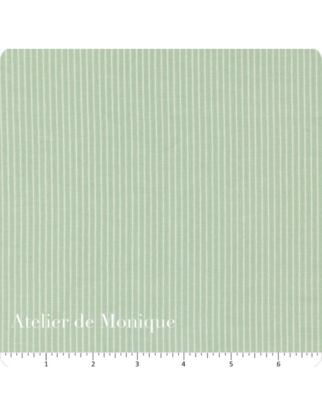El estampado Sky Stripes Galore presenta finas rayas verticales en blanco sobre un fondo verde menta claro (sky). Un diseño delicado, limpio y atemporal que aporta ligereza y estructura sin restar protagonismo a los estampados florales.