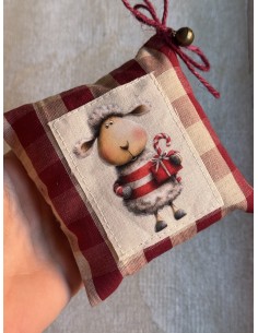 Transfer navideño de aproximadamente 7 x 7 cm, con una encantadora ovejita vestida de rojo y blanco, sosteniendo un bastón de caramelo. Un diseño dulce y divertido, ideal para adornos del árbol, cojincitos decorativos, etiquetas navideñas o cualquier proyecto creativo de patchwork. Incluye: ✔ 1 lámina de transfer ✘ No incluye la tela Cómo se aplica...