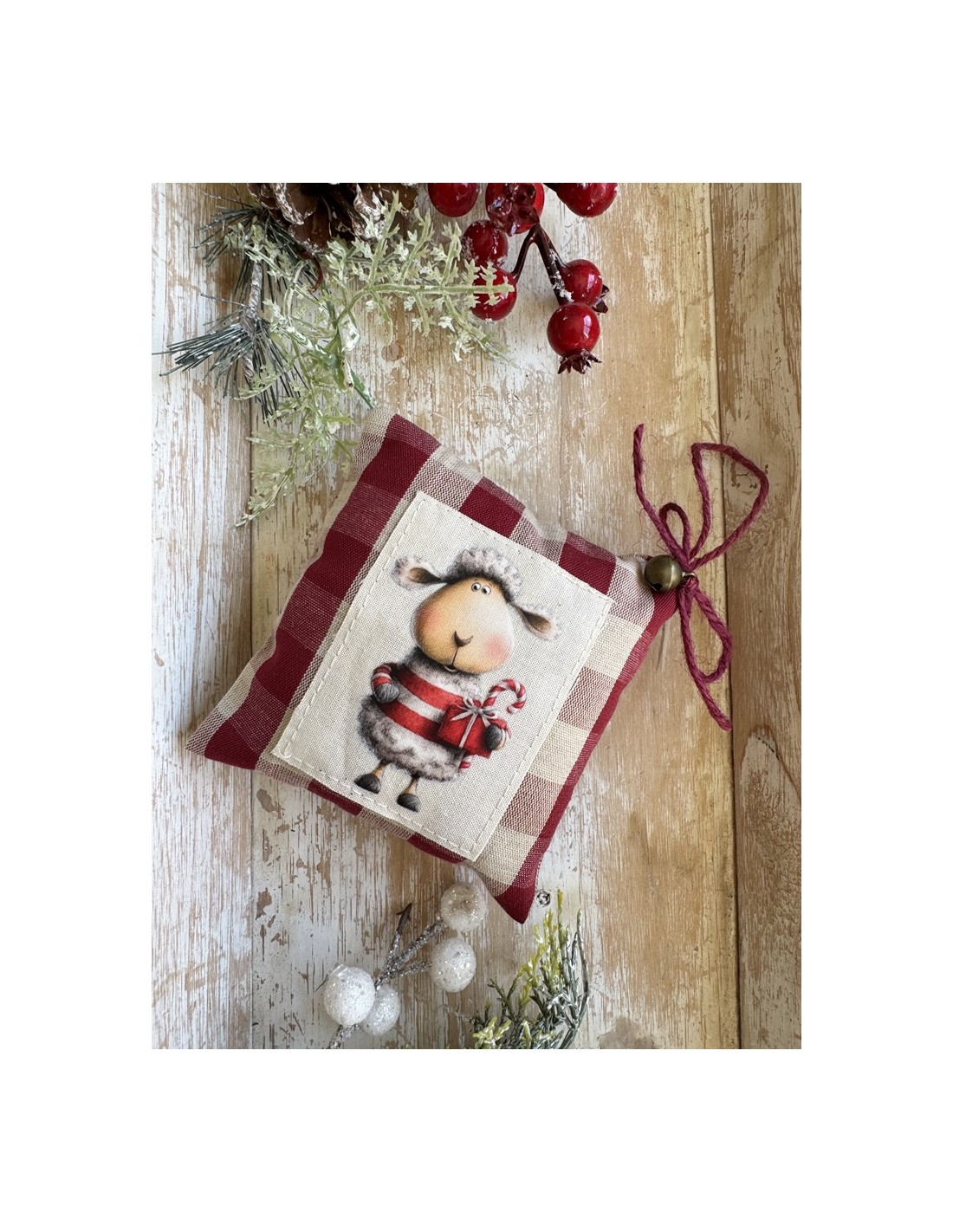 El kit incluye tela de cuadros, tela lisa, transfer textil, cordón, cascabel y un video tutorial paso a paso para que puedas coserlo sin complicaciones, incluso si estás empezando.