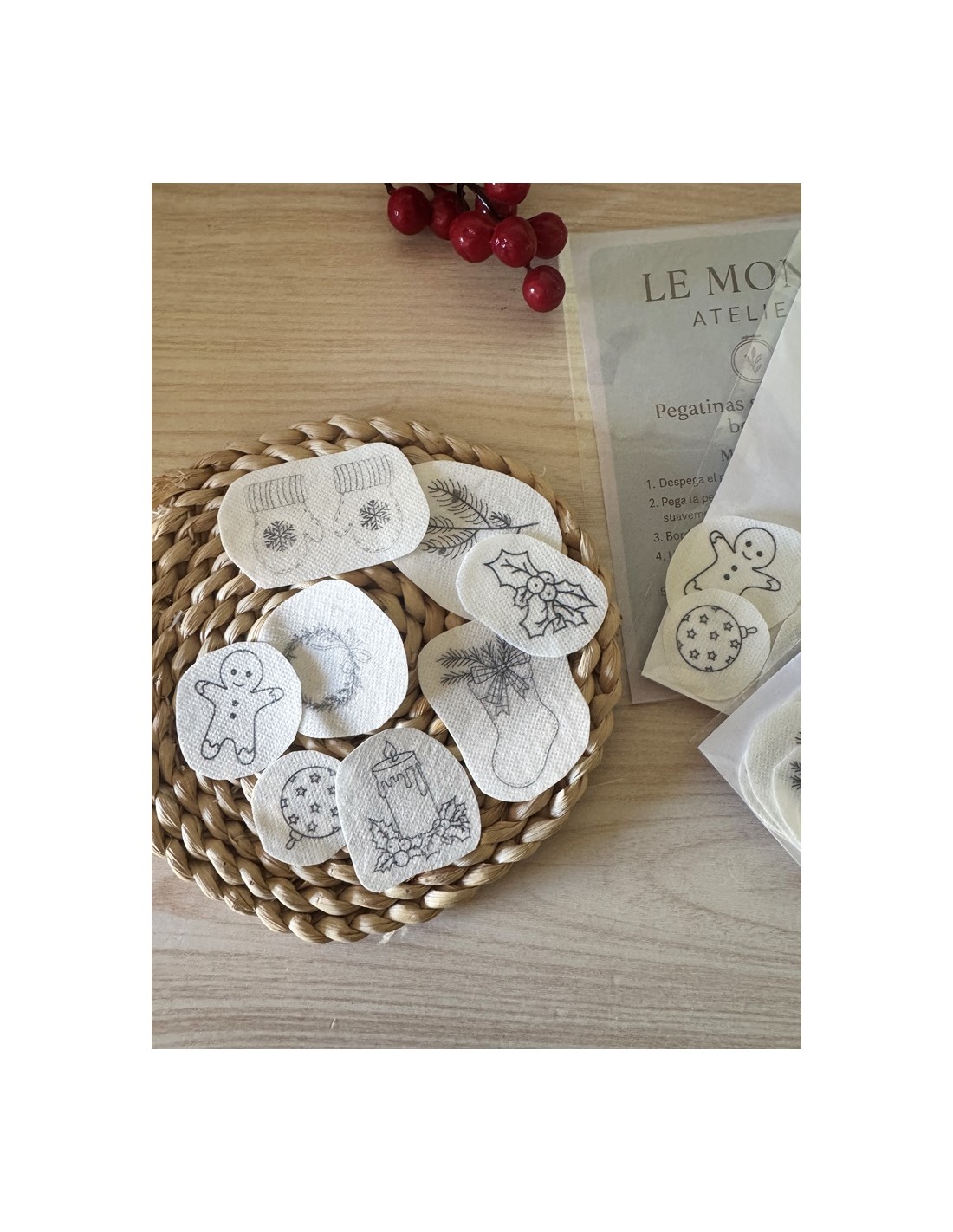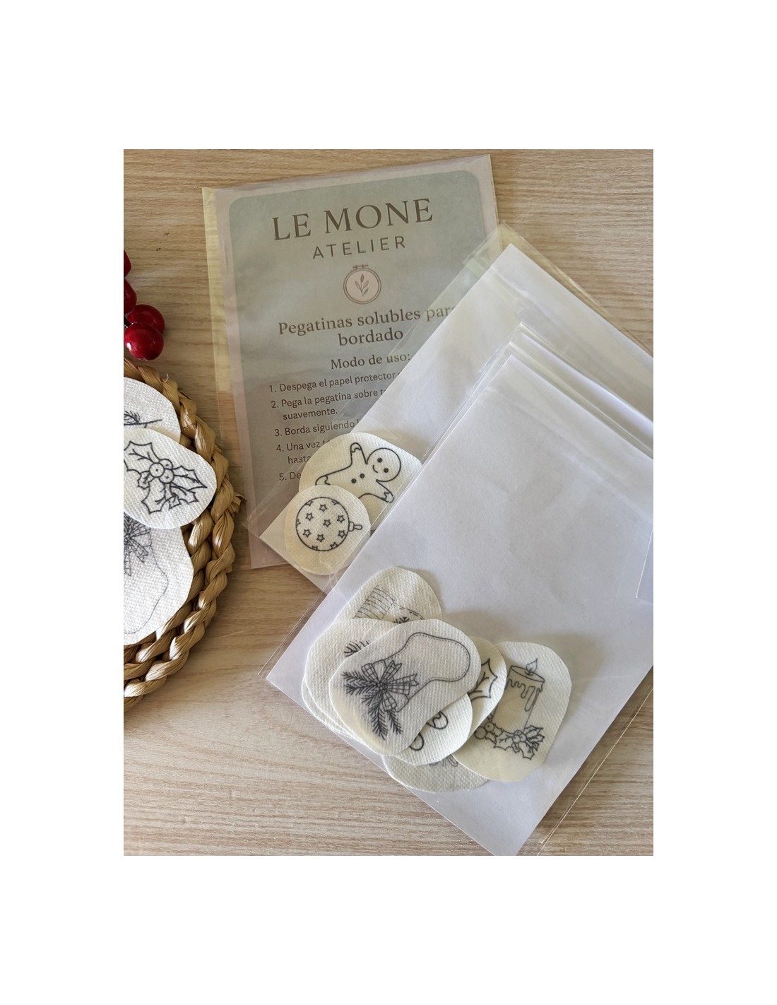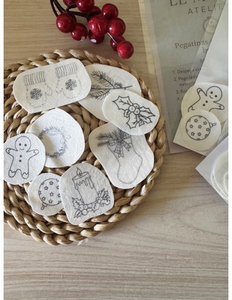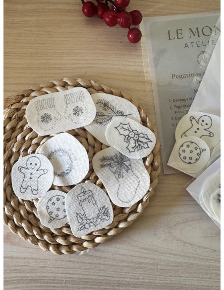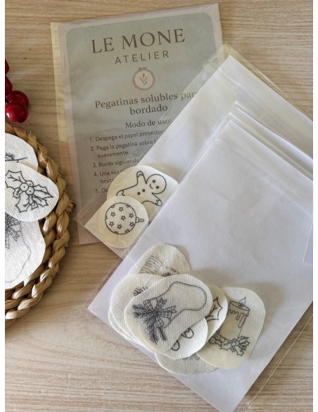 Solo tienes que pegar las pegatinas sobre tu tela, bordar siguiendo las líneas y disolverlas en agua.