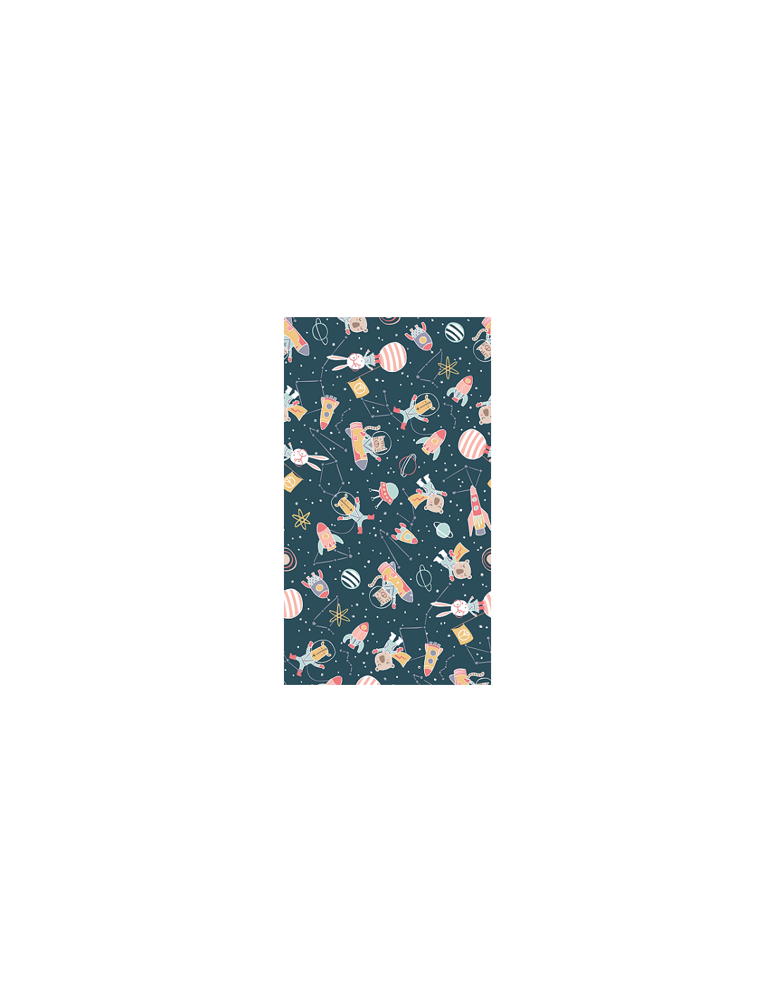 Tela infantil con un estampado divertido de gatos astronautas.