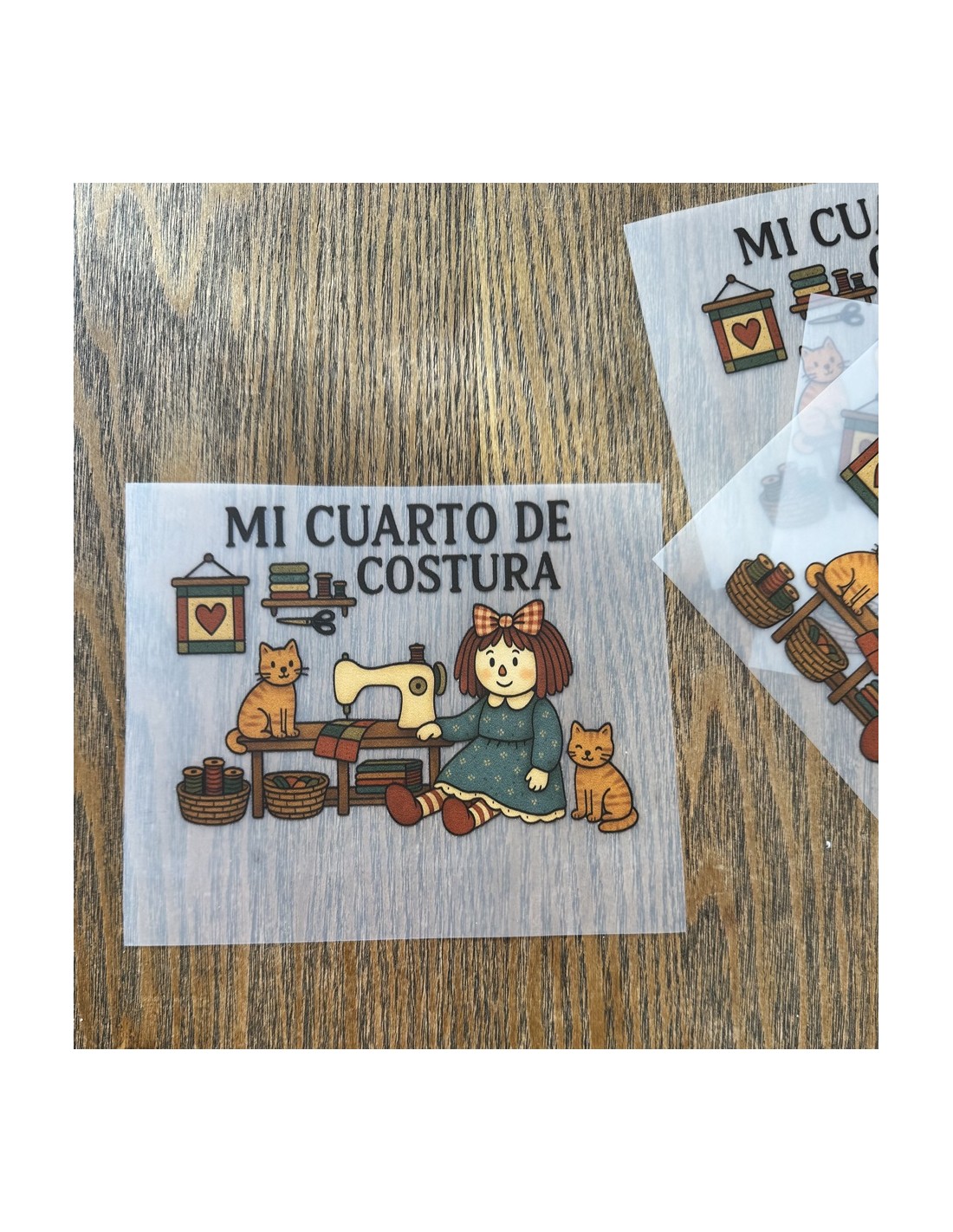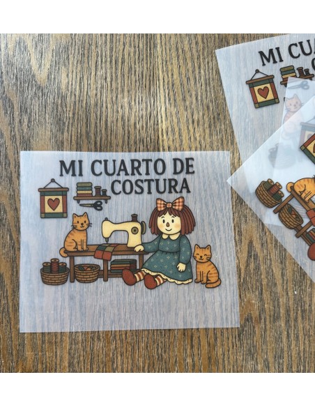 Transfer Textil DTF Mi cuarto de costura con gatos