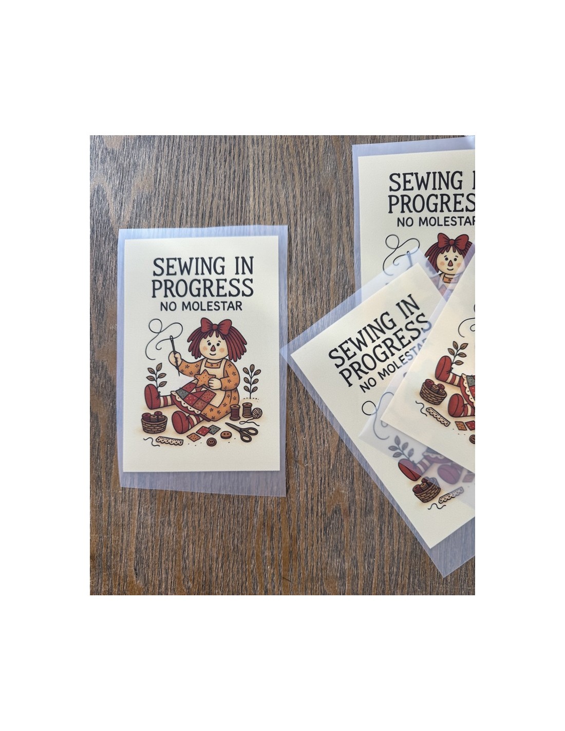 Transfer Textil DTF “Sewing in Progress – No molestar”