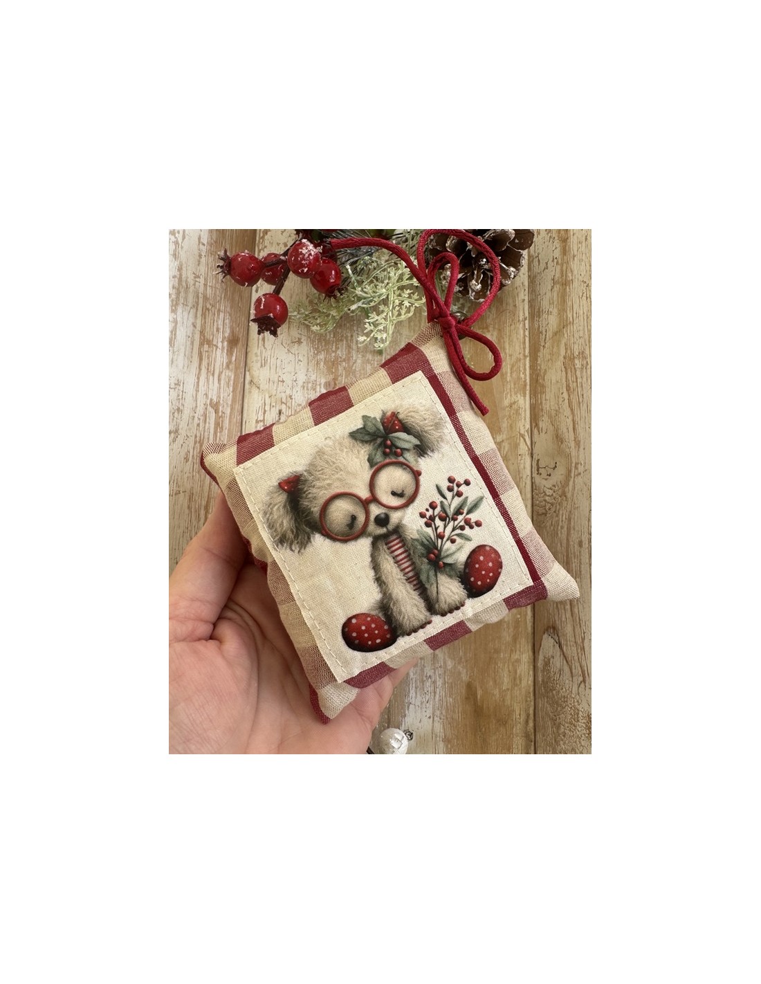 Transfer navideño de aprox.7x7cm de perrito con lazo