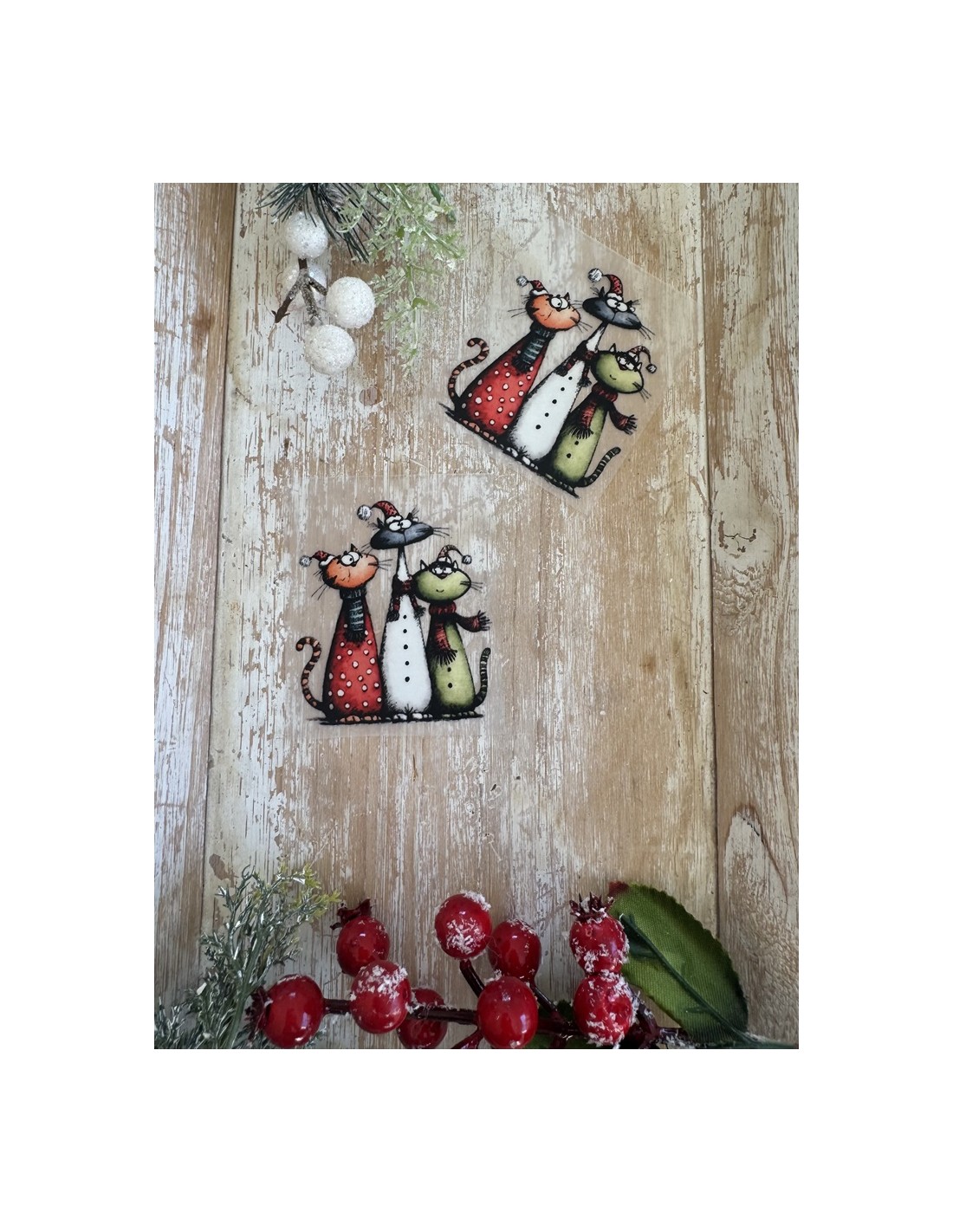Transfer Navideño “Trío de Gatitos con Gorros" 7x7cm